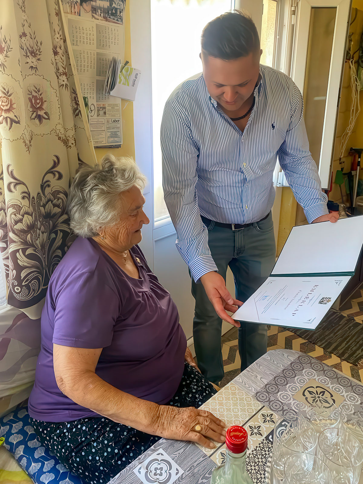 A jeles napon Szalai László polgármester és Horváth Judit igazgatási ügyintéző személyesen keresték fel Juci nénit otthonában, hogy átadják jókívánságaikat, valamint az önkormányzat szívből jövő üdvözletét.