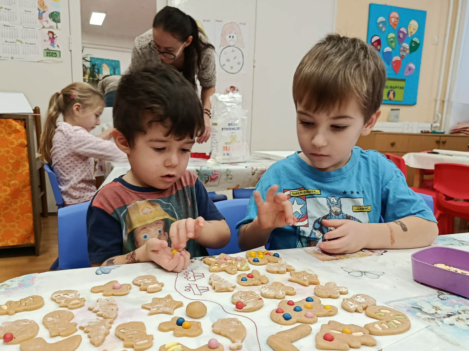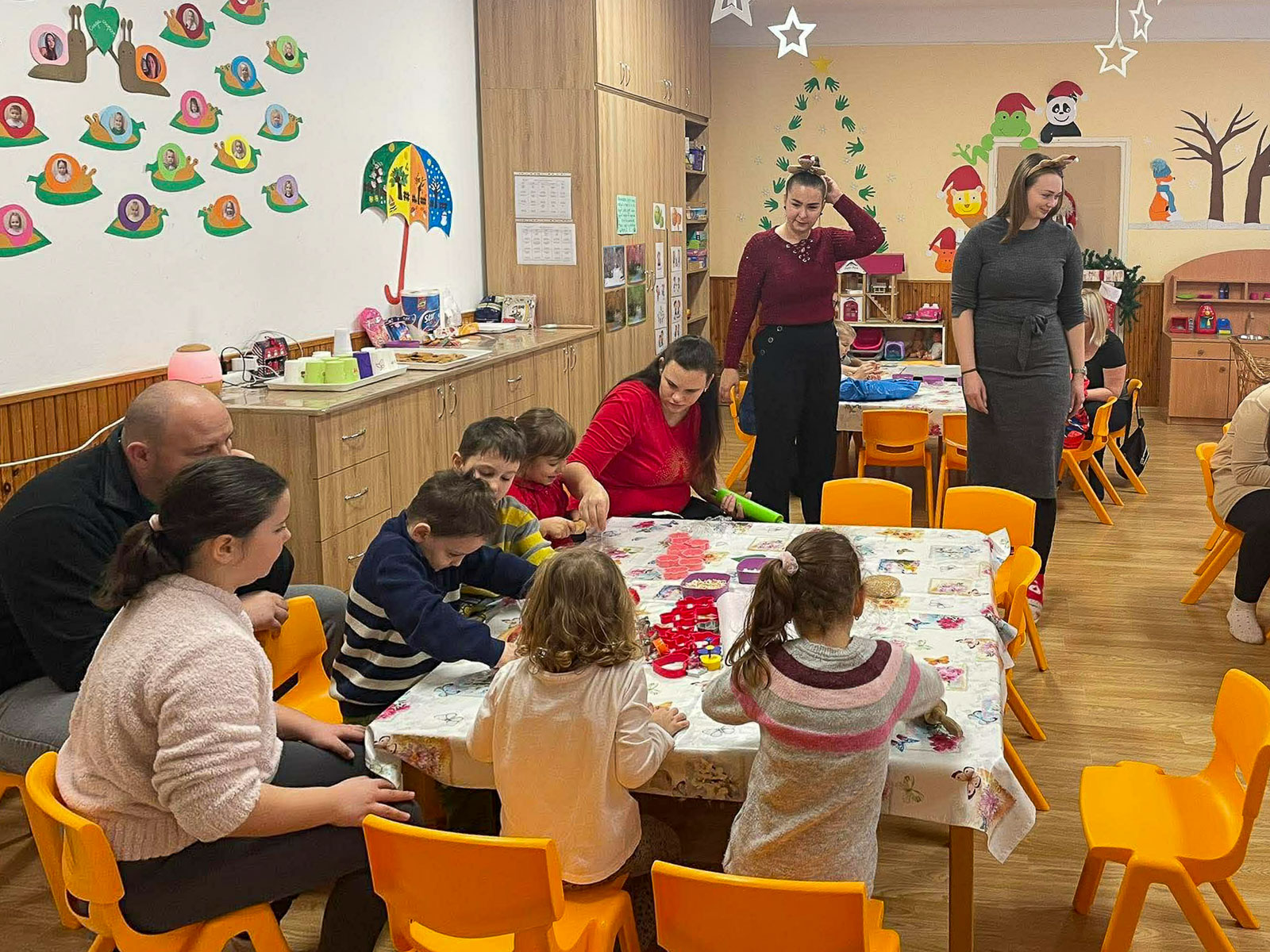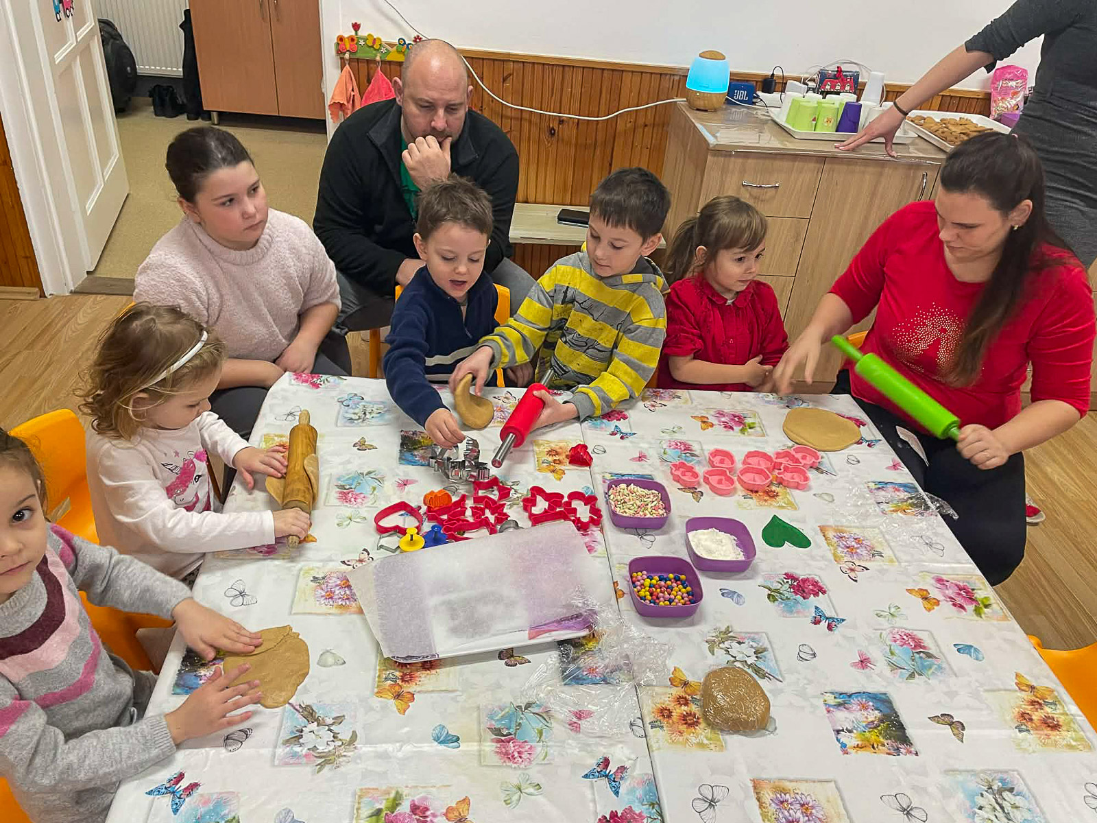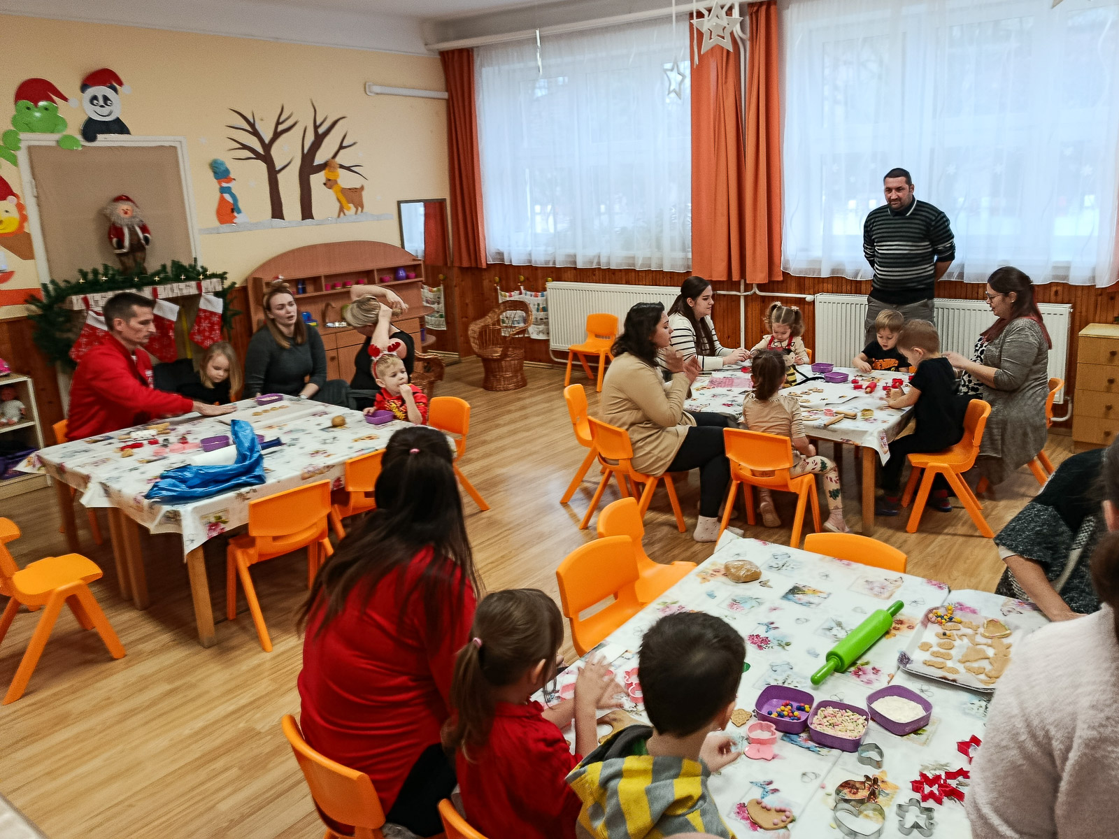 Az óvodapedagógusok már napokkal korábban nagy lelkesedéssel készültek az eseményre. Előre begyúrták a mézeskalács tésztát, feldíszítették az óvodát, és mindent megtettek azért, hogy igazi karácsonyi hangulat fogadja az érkező családokat. Az ünnepi dekoráció, a mézeskalács illata, a forró tea és a karácsonyi zene mind hozzájárultak a meghitt légkörhöz.