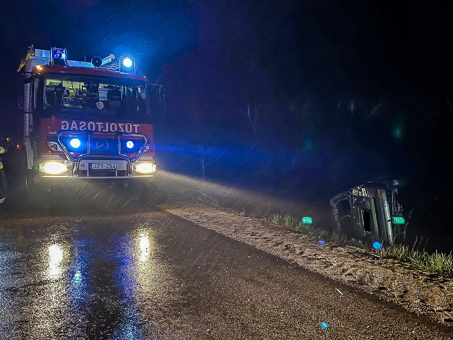 A segélyhívás március 29-én éjszaka futott be a hatóságokhoz, miután az 5412-es út 15-ös kilométerszelvényénél egy autó letért az útról és árokba borult. A baleset helyszínére rövid időn belül megérkeztek a mentőegységek és a rendőrség munkatársai.