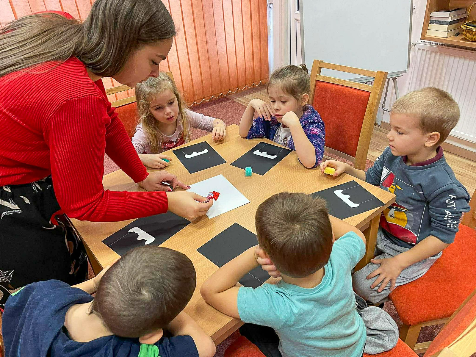 A program beszélgetéssel és közös meséléssel indult. A gyerekek köré gyűlve figyelték Anitát, aki meséken, rövid történeteken és kedves kérdéseken keresztül vezette be őket a könyvek izgalmas világába. A kicsik élénken reagáltak, sokan örömmel kapcsolódtak be a beszélgetésbe, meséltek saját élményeikről, vagy válaszoltak Anita játékos kérdéseire. A foglalkozásnak ez a része nemcsak szórakoztató volt, hanem fejlesztő is: segítette a gyerekek figyelmét, szókincsét és önkifejezését.