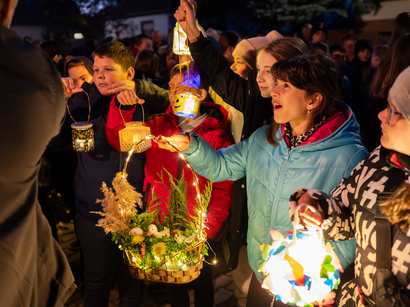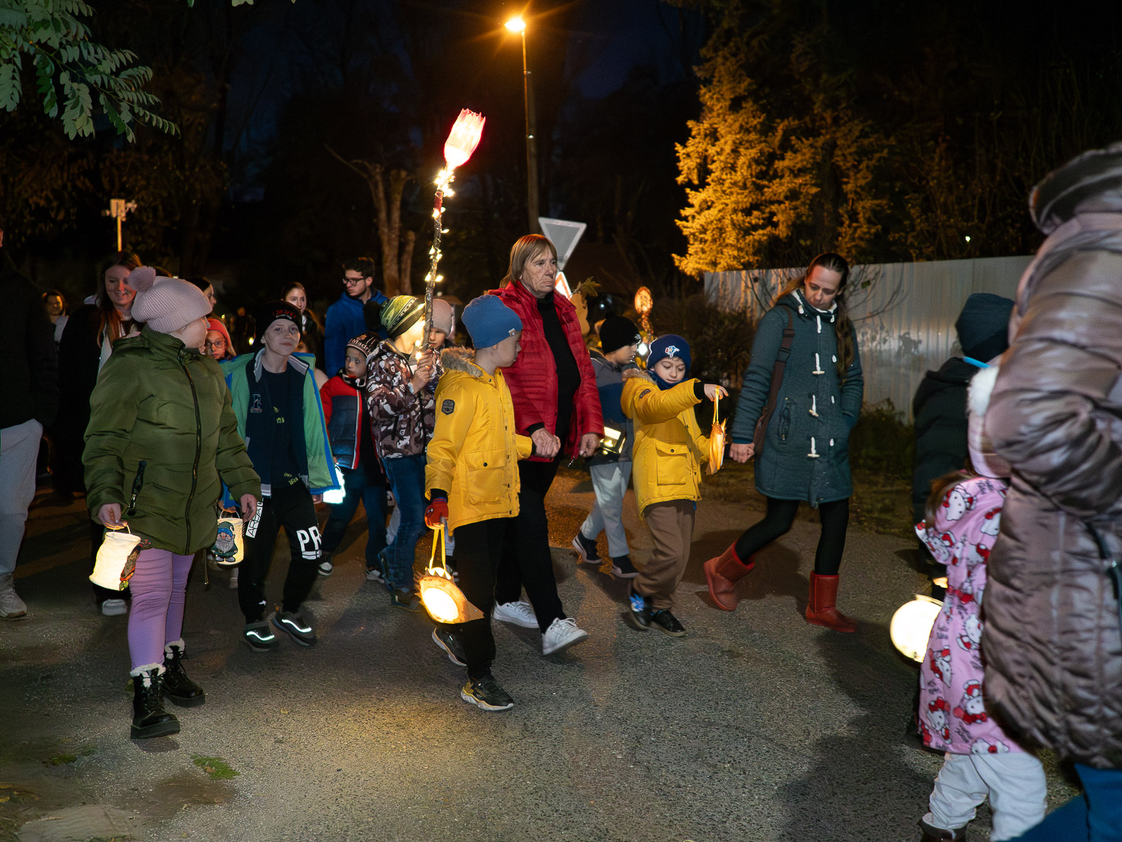 Több százan gyűltek össze Kunfehértón november 7-én, hogy az általános iskola sportcsarnoka mellett megrendezett közösségi lámpás felvonuláson együtt ünnepeljék Márton napját.
