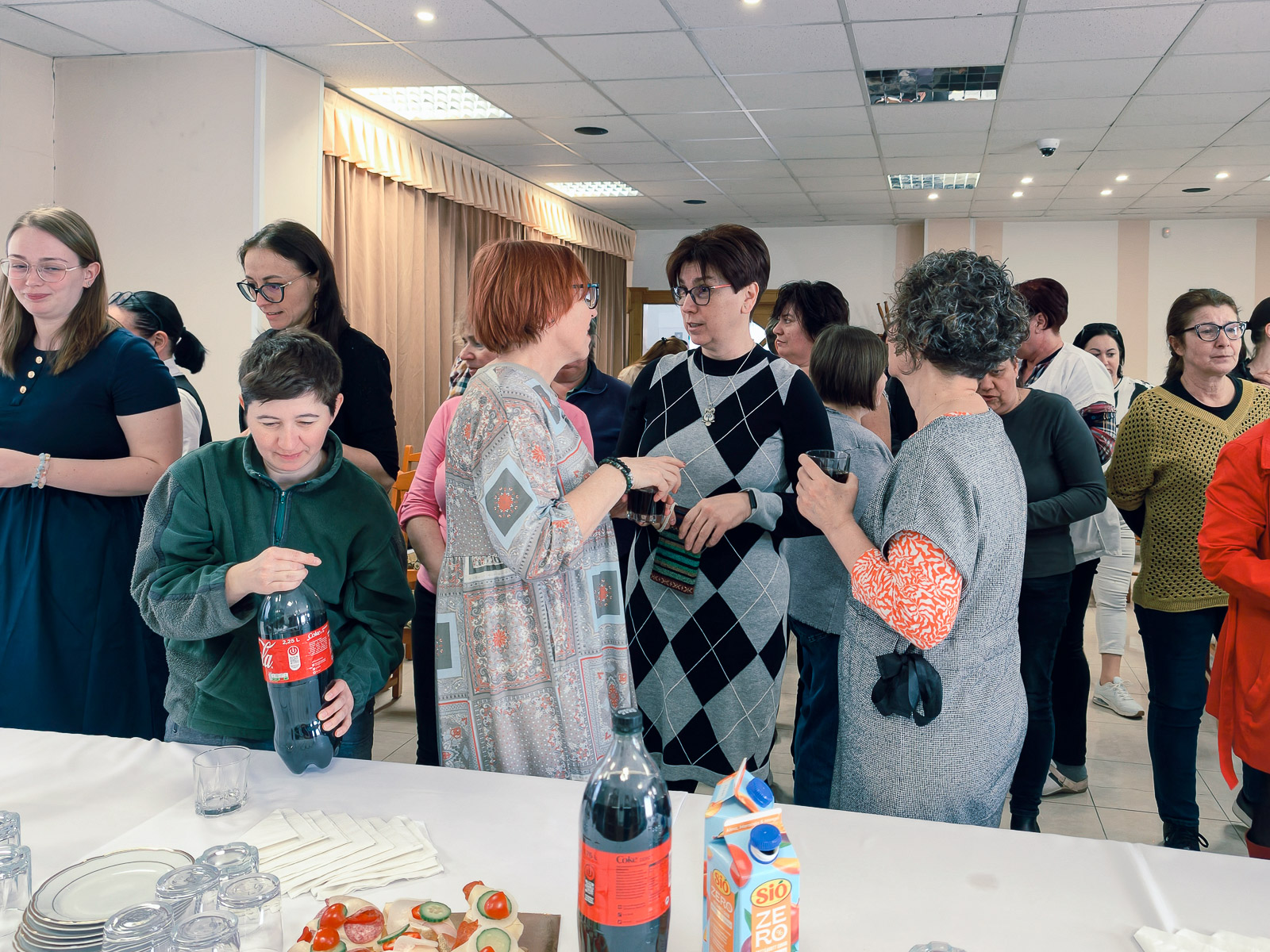 A köszöntő után a szervezők virággal kedveskedtek az ünnepelteknek. A hagyománytól eltérően ezúttal nem vágott virágot, hanem élő növényeket adtak át, amelyek hosszabb ideig emlékeztethetnek a nőnapi ünnepségre. A virágátadás mellett egy kötetlen állófogadás is várta a résztvevőket, ahol egy kis harapnivaló mellett beszélgethettek a jelenlévők.